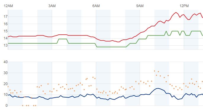 I think I know that your are running that weather station in stand alone mode (no PC ou RPi), reporting directly to WU. What I mean is, perhaps when you are in the farm, you could connect a laptop, and leav Cumulus running for a day or so. The graphs obtained with Cumulus will have a better sampling rate than the graphs from WU.