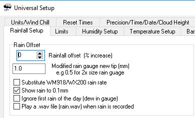 'Universal Setup' page. On the 'Rainfall Setup' area.