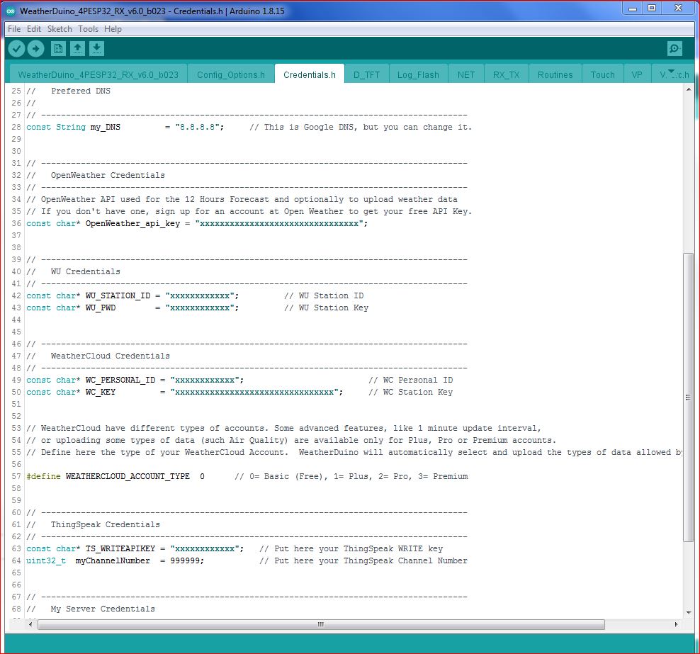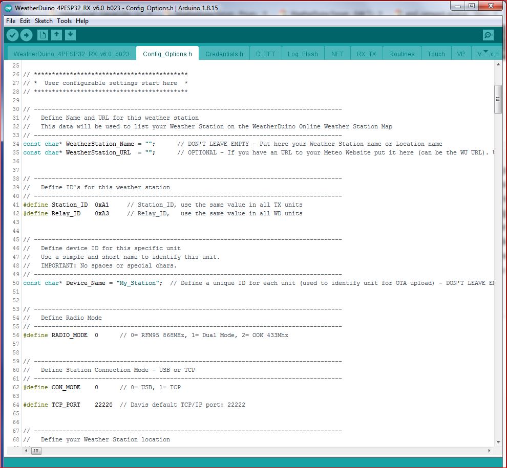 Despite there are some advanced settings, in general, configuring the WeatherDuino firmware is almost self-explanatory, as shown in examples bellow.
