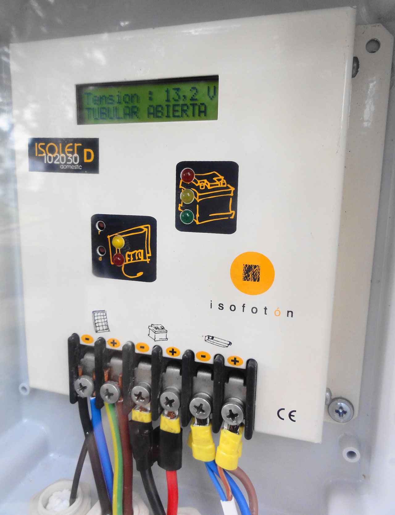 The system is solar powered using a 85W panel coupled with an 150AH lead acid battery. Both reused.