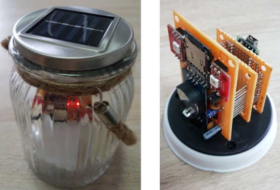 It logs the data on a micro SD card to be independent of potentially lacking IT infrastructure and is powered by a battery to be independent of missing power supply. The best feature is probably the fancy cord handle, hence its potentially the most haute couture pyranometer ever build
