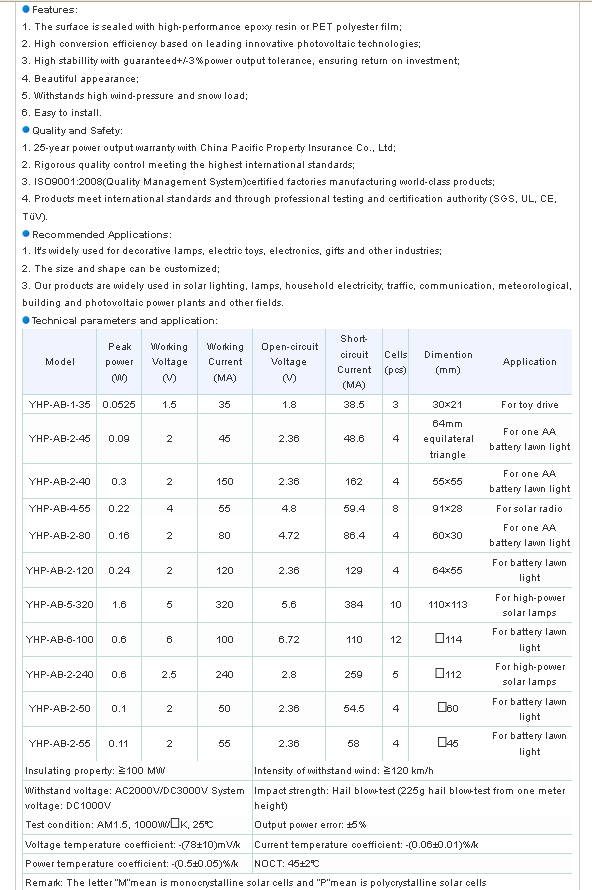 The last note in the table suggests that the cells are PolyCrystalline. That might not be quite as "good" as MonoCrystalline, but the differences now seem quite small. What you should avoid is Amorphous (or thin film) Silicon panels (often used in cheap solar garden lights, etc.) which have less satisfactory characteristics.